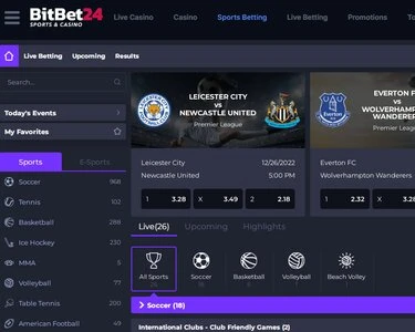 Bitbet24 offers competitive odds on many sports events and markets.