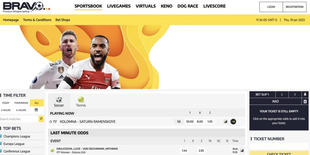 To place a bet in the bookmaker, users go through registration. Identity verification is not provided by the bookmaker; winnings can only be obtained with a passport. An account can be opened in Bravobet in Ethiopian birr and US dollars.