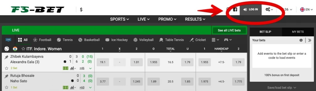Open the FS Bet website on your mobile device and tap the login button in the right corner. Enter your registered ID, email, and password, then tap the 'register' button to log in.
