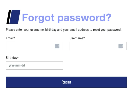 If you forget your password, click on the 'Forgot Password' link near the login area. To reset your password, you must provide your username, email address, and birthday. Follow the instructions sent to your email to complete the reset.