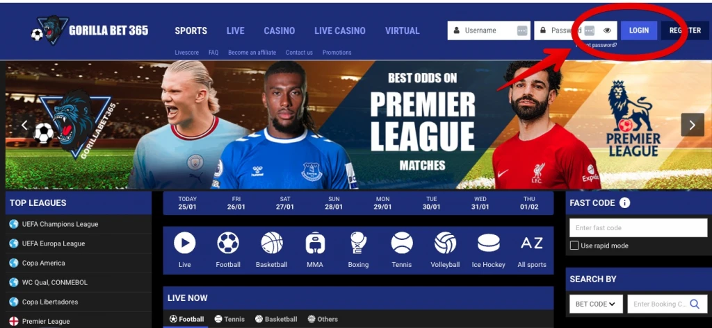 To log in, go to the Gorillabet365 website, locate the login section at the top, enter your username and password, and click the 'Login' button. Ensure your credentials are entered correctly, as passwords are case-sensitive.