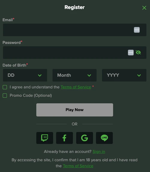 Google, Facebook, Twitch, or LINE Accounts: Choose one of these options to register quickly using your existing account credentials.