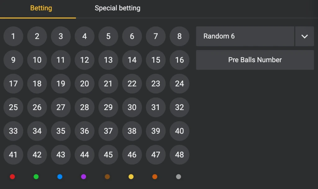 In Lucky 6, 35 balls are drawn from a pool 48 in each game session. Players bet on the outcome of these draws, choosing six numbers they believe will be among the drawn balls. The game typically runs every five minutes, offering players numerous chances to win within a short period.