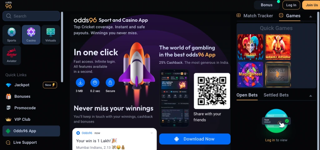 Odds96 Sportsbook is a well-established online betting platform offering a comprehensive experience. It features a user-friendly interface, a wide range of sports markets, competitive odds, and live betting options and prioritises fair play and security.