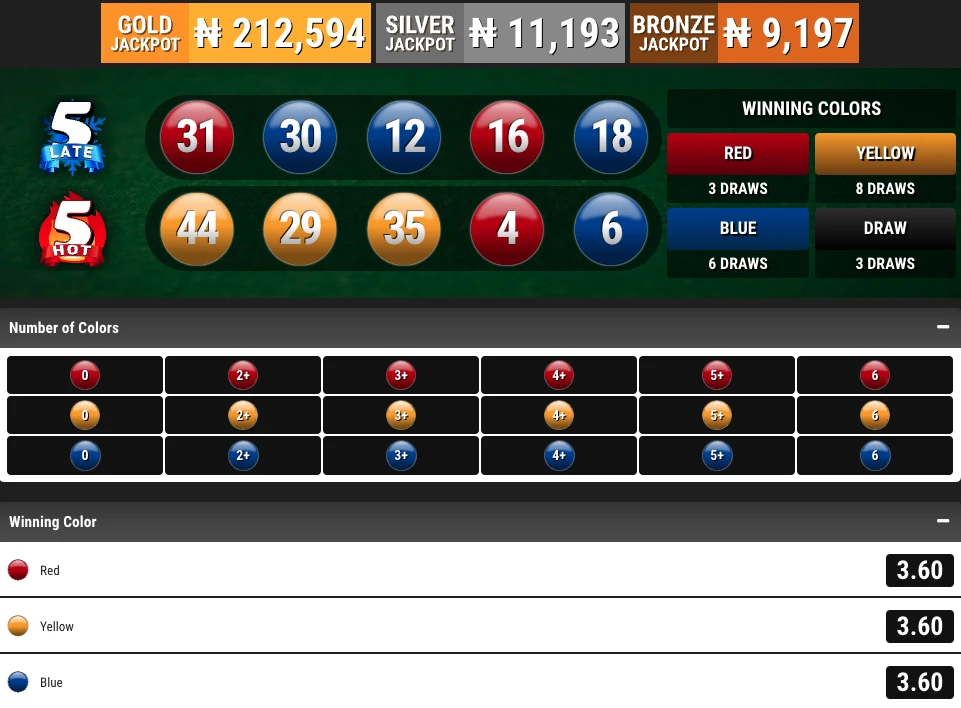 Color-Color is a simple yet engaging betting game where you predict the outcome of a virtual colour draw. It's a fast-paced game that offers a departure from traditional sports betting, perfect for those looking for quick and entertaining betting sessions.