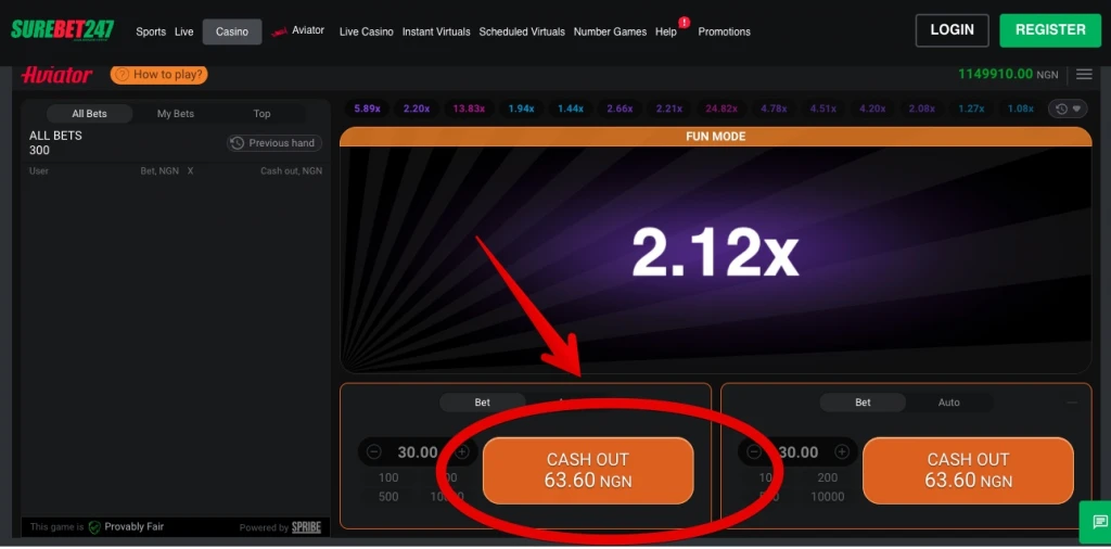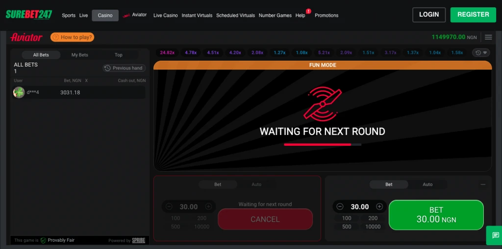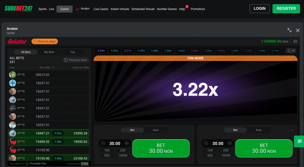 To start playing Aviator, register and log into your Surebet 247 account. Navigate to the gaming section, select Aviator from the list of available games, and ensure your account is funded to place real bets. Alternatively, you can try the demo mode to practice.